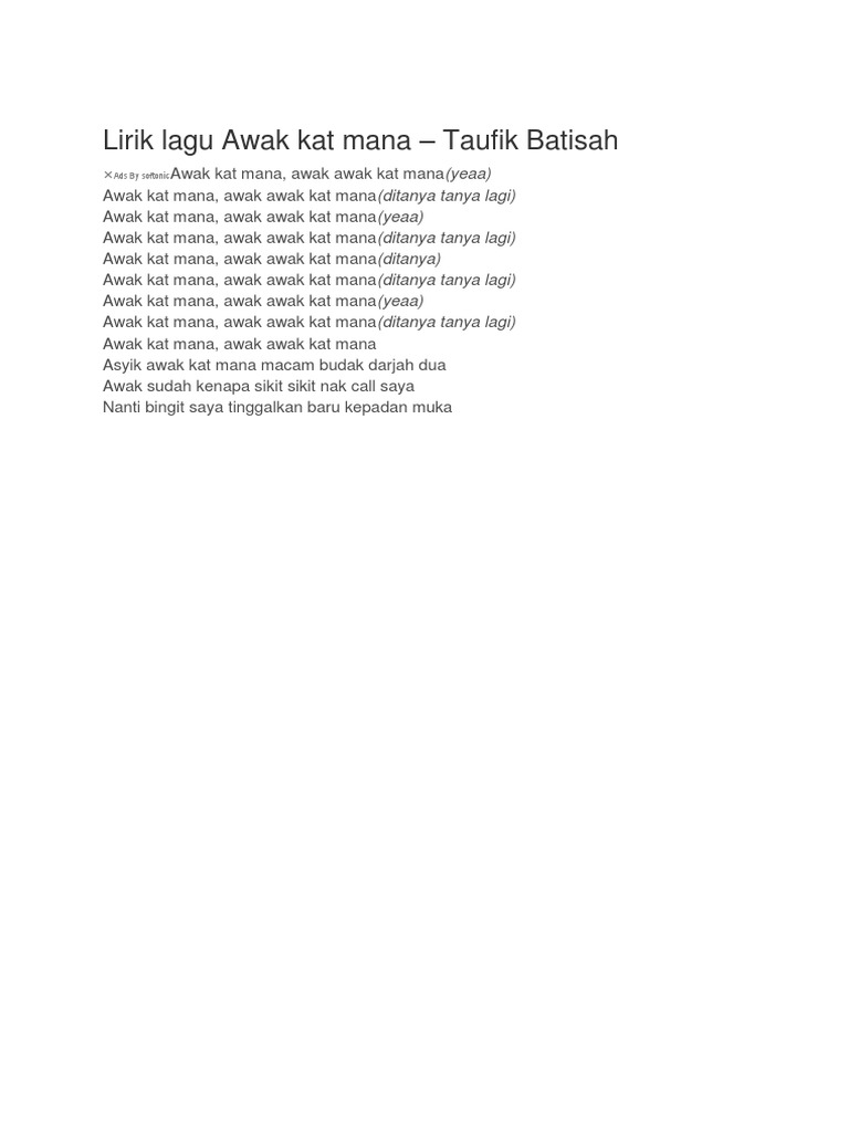 Listen to Awakkatmane by Taufik Batisah 5279 Shazams featuring on All-Time Malaysian Hits and 10s Malaysian Music Essentials Apple Music playlists. Sesuai dengan isu percintaan remaja masa kini yang childish dan menjengkelkan. Tak kira di mana pun aku berada.
